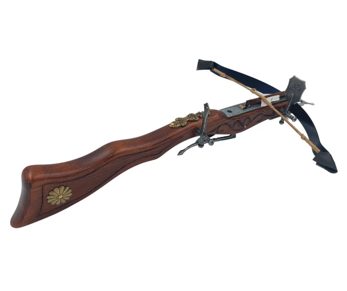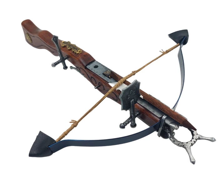 Replika Kuszy – 0F to fascynujący i precyzyjnie wykonany przedmiot, który przeniesie Cię do czasów wielkich potyczek wojennych. Ta wierna replika kuszy, używanej między XV a XVI wiekiem zachwyca swoim wykonaniem i historycznym wdziękiem.