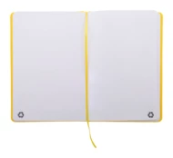 Notes pokryty skórą PU z recyklingu, zawierający 100 gładkich kartek z papieru pochodzącego z recyklingu. Z dopasowaną kolorystycznie zakładką i gumką. Rozmiar A5.
