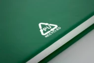 Notes pokryty skórą PU z recyklingu, zawierający 100 czystych kartek z papieru pochodzącego z recyklingu. Z dopasowaną kolorystycznie zakładką i gumką. Rozmiar A6.
