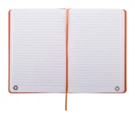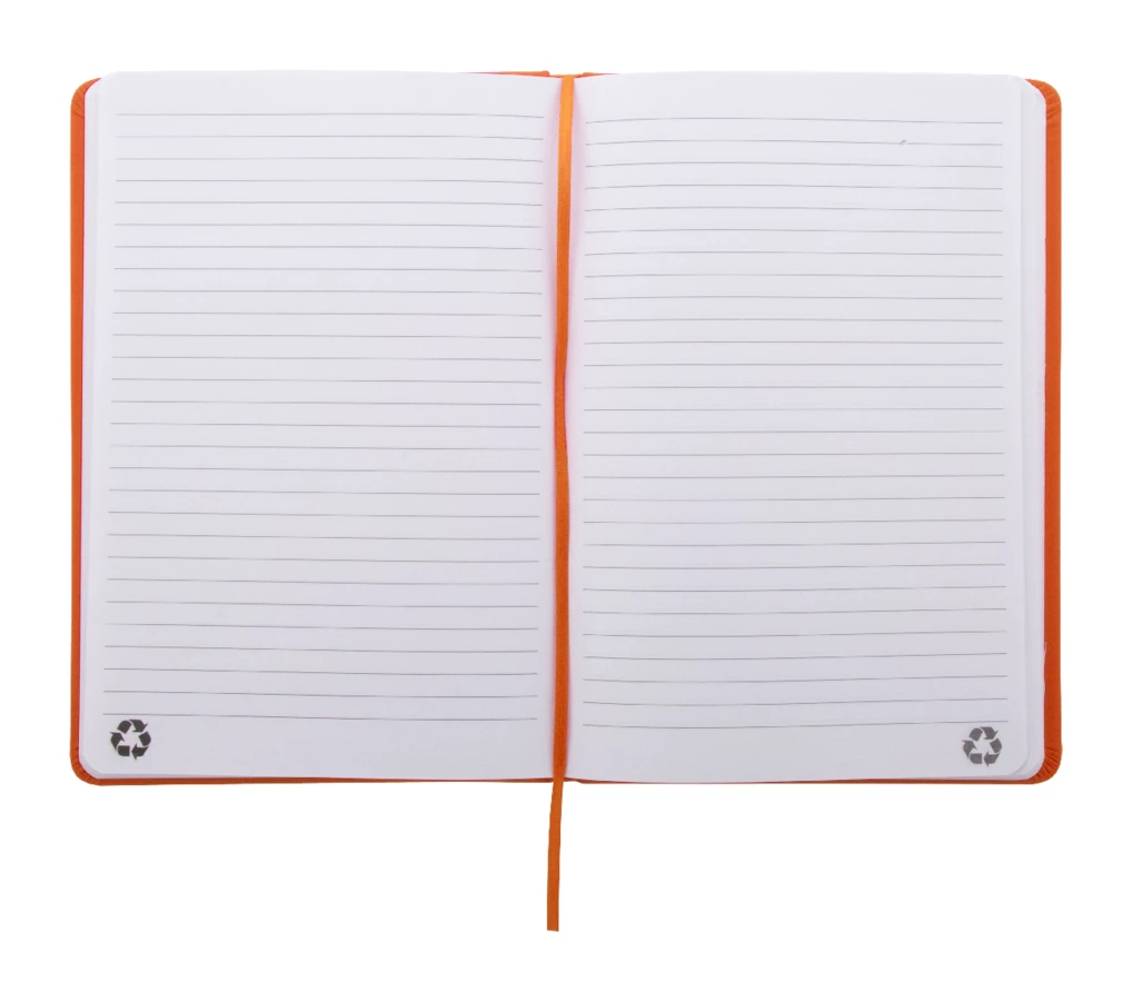Notes z okładką ze skóry PU z recyklingu ze 100 kartkami w linie z papieru z recyklingu. Z dopasowaną kolorystycznie zakładką i gumką. Rozmiar A5.