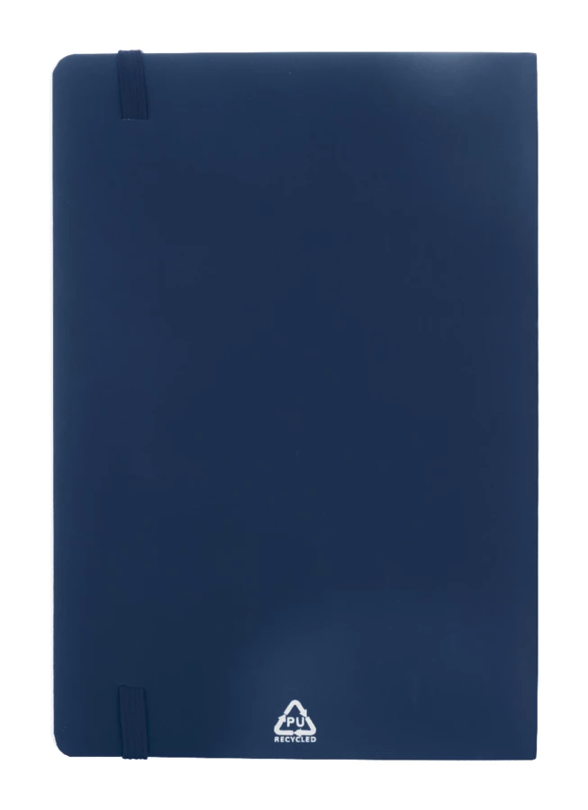 Notes z miękką okładką ze skóry PU z recyklingu, z 80 kartkami w linie z papieru z recyklingu. Z zakładką w pasującym kolorze i gumką. Rozmiar A5.