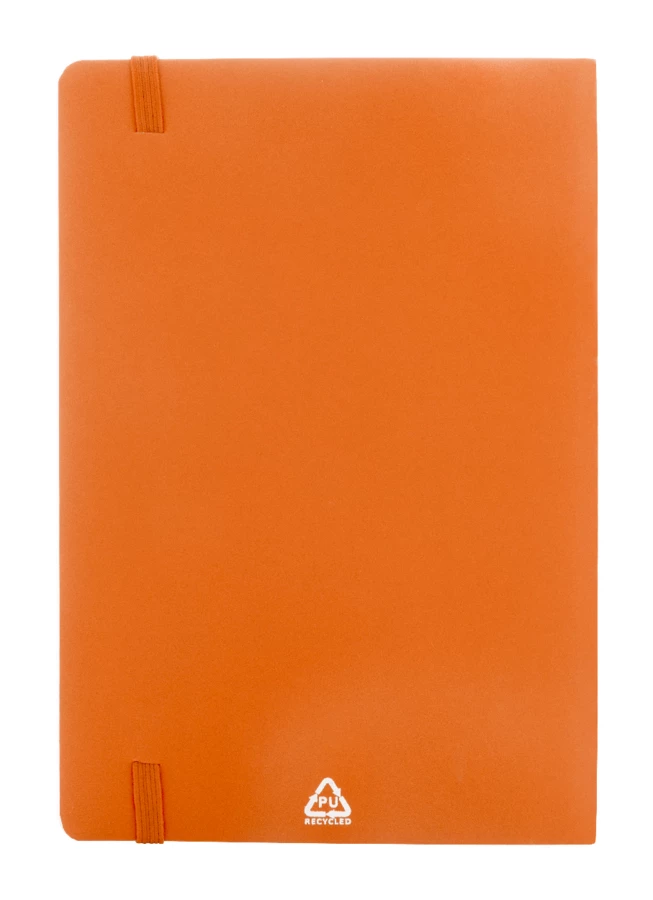 Notes z miękką okładką ze skóry PU z recyklingu, z 80 kartkami w linie z papieru z recyklingu. Z zakładką w pasującym kolorze i gumką. Rozmiar A5.