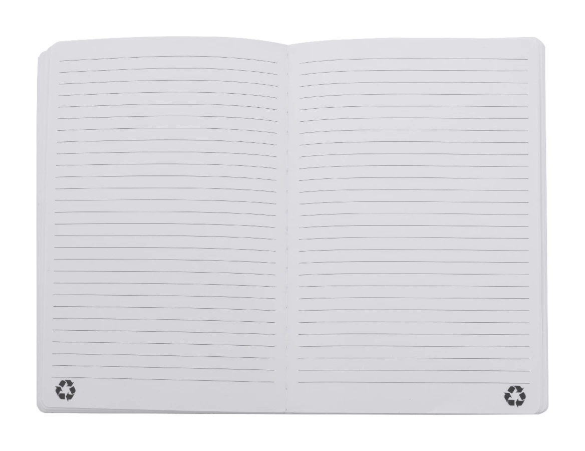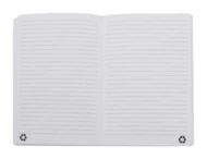 Notes z miękką okładką ze skóry PU z recyklingu, z 80 kartkami w linie z papieru z recyklingu. Z zakładką w pasującym kolorze i gumką. Rozmiar A5.
