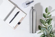 Butelka ze stali nierdzewnej z pokrywką z PP i silikonowym paskiem do noszenia, 600 ml.