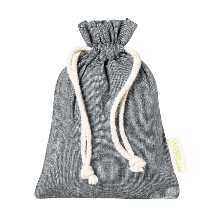 Torba wielokrotnego użytku z bawełny z recyklingu z zapięciem na sznurek. 100% bawełna z recyklingu, 120 g/m².
