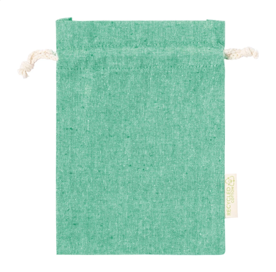 Torba wielokrotnego użytku z bawełny z recyklingu z zapięciem na sznurek. 100% bawełna z recyklingu, 120 g/m².