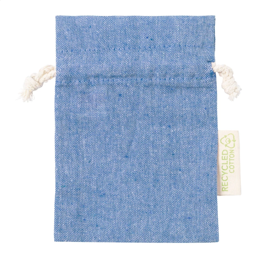 Torba na prezent z bawełny z recyklingu, zamykana na sznurek. Z charakterystyczną metką informującą o bawełnie z recyklingu. 100% bawełna z recyklingu, 120 g/m².