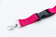 Smycz poliestrowa RPET z odpinanym metalowym karabińczykiem i klamrą bezpieczeństwa.