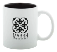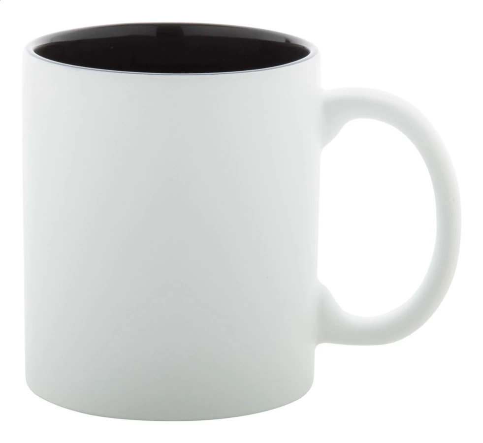 Bílý keramický hrnek, barevný uvnitř, 350 ml. Vygravírované logo je do barvy vnitřku. V dárkové krabičce.