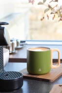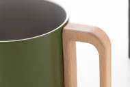 Kubek termiczny ze stali nierdzewnej z podwójnymi ściankami i drewnianym uchwytem. Pojemność 350 ml.