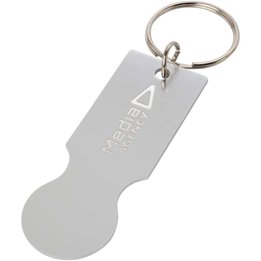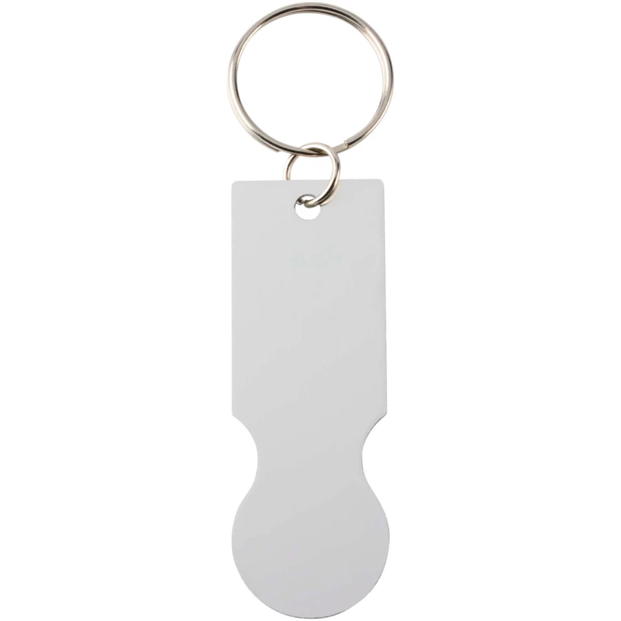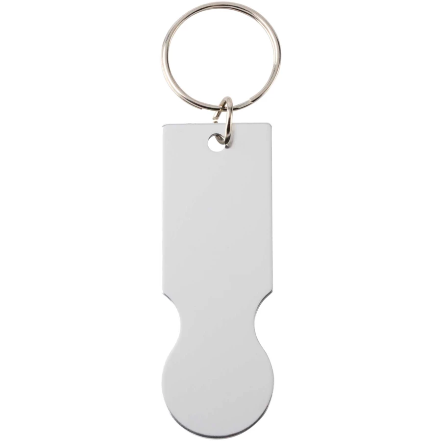 Metalowy brelok Rhea z żetonem do wózka został zaprojektowany tak, aby pasował do większości wózków sklepowych, umożliwiając ich otwieranie bez użycia monet lub żetonów.