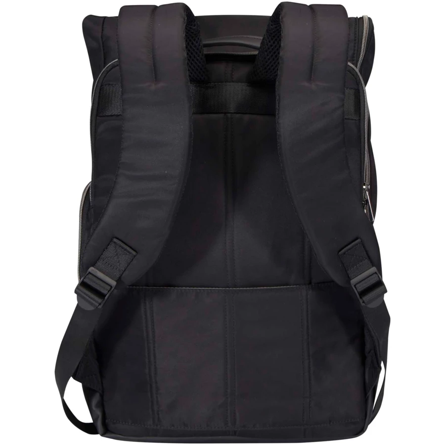 Plecak zwijany Rhine umożliwia płynne przechodzenie od pracy do wypoczynku dzięki swojemu eleganckiemu stylowi i wszechstronności. Wysokiej jakości nylon z recyklingu z certyfikatem GRS, miękka podszewka RPET i elementy z najwyższej jakości skóry PU. Plecak posiada specjalną komorę na laptopa 15” z 2 dodatkowymi kieszeniami na akcesoria elektroniczne, główną komorę z praktycznym wejściem zapinanym na zamek błyskawiczny w kształcie litery L i 2 kieszeniami, przednią kieszeń organizacyjną zapinaną na zamek błyskawiczny oraz kieszeń boczną. Ciesz się maksymalnym komfortem noszenia dzięki wyściełanym i regulowanym paskom na ramiona oraz uchwytowi górnemu pokrytemu poliuretanem. Pojemność: 18 litrów. Wytrzymałość do 10 kg. Wolne od PVC.