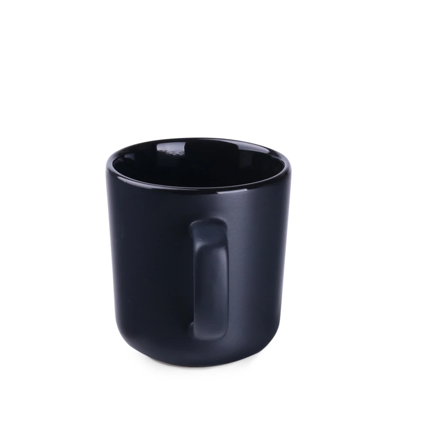 Szykowny czarny matowy kubek o nowoczesnej formie. Posiada duże mozliwości customizacji.