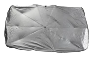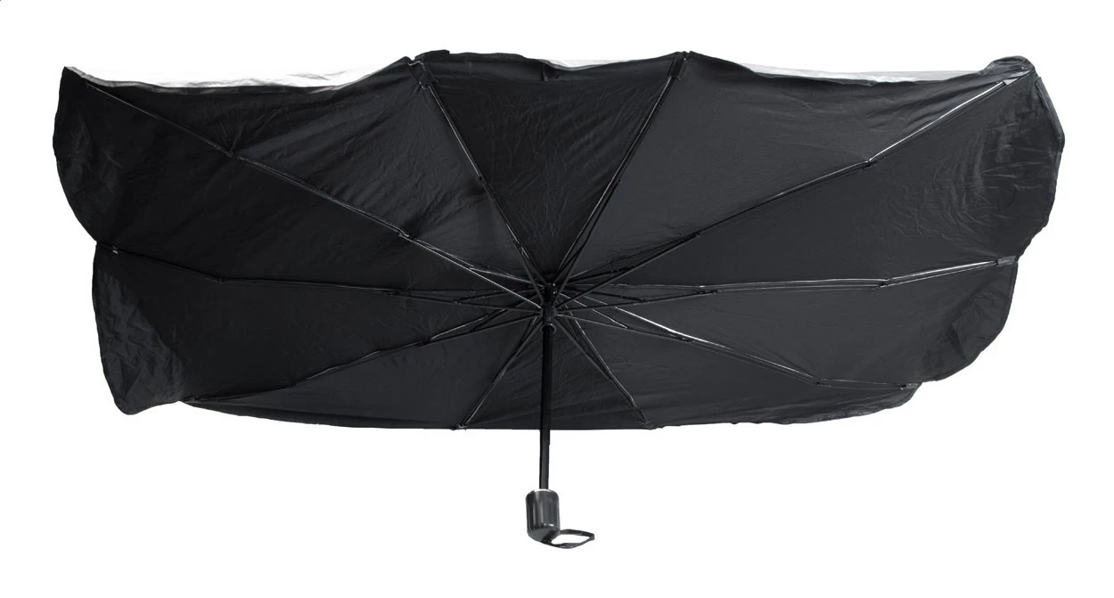 Składana, ręczna parasolka samochodowa na przednią szybę z metalową ramą. W etui poliestrowym.
