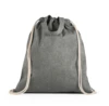 Worek zawierający bawełnę z recyklingu (70%) i poliester (30% rPET) (140 g/m²), z 30 cm uchwytami i bawełnianymi sznurkami do zamykania. Bawełna z recyklingu jest niebarwiona. Surowiec jest używany w swojej oryginalnej formie i kolorze, bez użycia barwiących lub wybielających chemikaliów, co przyczynia się do zmniejszania negatywnego wpływu na środowisko. 370 x 410 mm