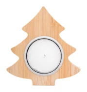 Bambusowy świecznik bożonarodzeniowy ze świeczką typu tealight na bazie wosku roślinnego o zapachu wanilii. Czas palenia: 4 godziny. W pudełku z papieru kraft.