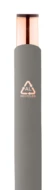 Długopis z aluminium pochodzącego z recyklingu z gumowanym wykończeniem i elementami w kolorze różowego złota. Ze specjalną powłoką pod grawer lustrzany w kolorze różowego złota. Niebieski wkład.