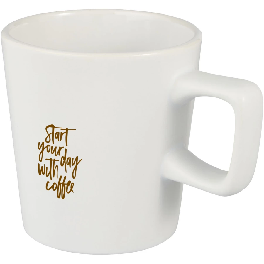 Nowoczesny kubek ceramiczny z matowym wykończeniem. Pojemność 280 ml. Wszystkie ozdoby nadają się do mycia w zmywarce. Zapakowany w kartonowe pudełko upominkowe wykonane z materiałów pochodzących z recyklingu.