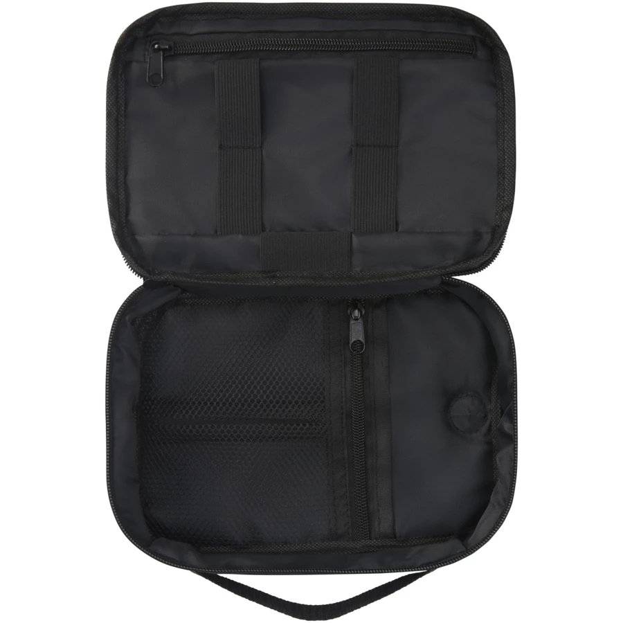 Organizer Ross z recyklingu, posiadający certyfikat GRS idealnie nadaje się dla osób będących w ciągłym ruchu i utrzymuje w porządku powerbanki, kable ładujące lub inne akcesoria elektroniczne. Posiada wiele kieszeni, elastyczne szlufki i przelotkę na przewód umożliwiającą przechowywanie powerbanku wewnątrz etui podczas ładowania telefonu. Posiada również plastikowy karabińczyk do mocowania do innej torby. Pojemność: 1 litrów.