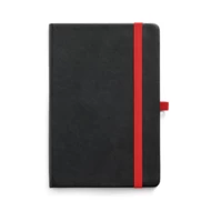 Notatnik A5 z twardą okładką z PU i 160 stronami w linie. Notatnik z kolorowym podłożem umożliwiającym grawerowanie laserowe w kolorze gumki. Posiada tasiemkę jako zakładkę, wewnętrzną kieszeń i uchwyt na długopis (długopis nie jest dołączony). 140 x 210 mm