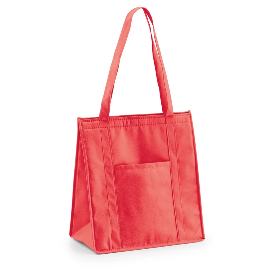 Torba termiczna non-woven (80 g/m²). Przylegające zamknięcie, posiada kieszeń frontową. Pojemność do 3 L. 320 x 350 x 170 mm
