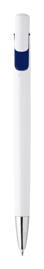 Plastikowy długopis z kolorowymi wykończeniami i chromowaną końcówką. Z niebieskim wkładem.