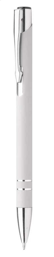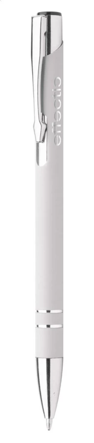Aluminiowy długopis z gumowanym korpusem i niebieskim wkładem. Idealny pod grawer lustrzany.