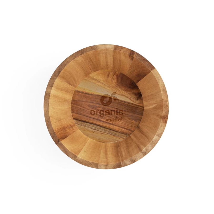Okrągła salaterka z drewna akacjowego, z materiału z certyfikatem FSC™ i innych kontrolowanych materiałów. Dostarczana w opakowaniu z papieru pakowego. Ponieważ produkt jest wykonany z naturalnych materiałów, kolor produktu oraz wynik drukowania mogą się różnić w zależności od produktu. Ø230 x 90 mm