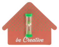 3 minutowy czasomierz z tworzywa sztucznego o dopasowym kolorze piasku. Produkt zawiera uchwyt z przyssawką.
