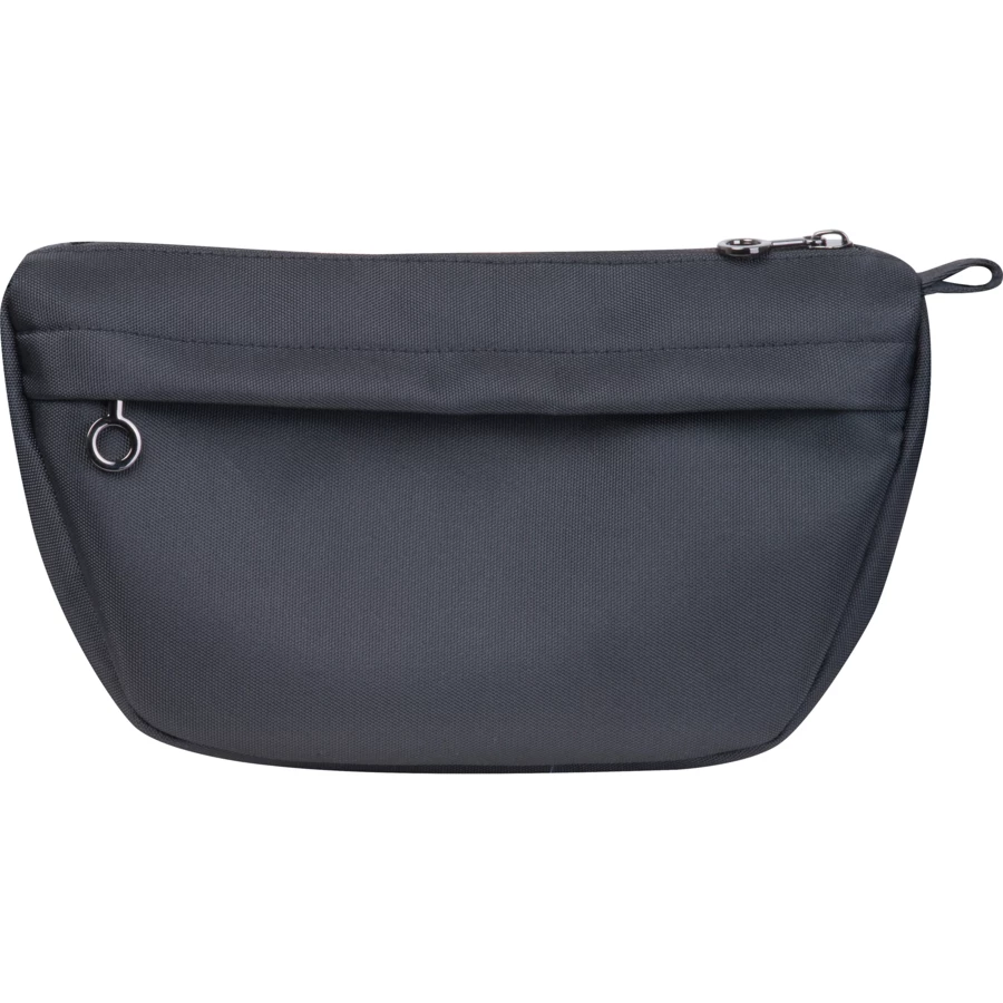 Nylonowa saszetka z detalami w kolorze gun metal, pas można regulować do długości 115 cm.