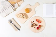 Okrągła deska do krojenia wykonana z jednego kawałka naturalnego drewna olchowego. W 100% naturalna i całkowicie bezklejowa.