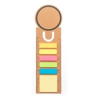 Zestaw biurowy 3 w 1 wykonany w 100% z papieru pochodzącego z recyklingu, z zaokrąglonymi krawędziami i czarnym nadrukiem na brzegach. Zawiera jeden blok karteczek samoprzylepnych (60 g/m²) z 15 arkuszami w 100% z papieru pochodzącego z recyklingu w kolorze żółtym oraz pięć małych bloków karteczek samoprzylepnych, każdy z 15 arkuszami, wykonanych w 100% z papieru pochodzącego z recyklingu w różnych kolorach: pomarańczowym, żółtym, różowym, jasnozielonym i niebieskim. Na marginesach znajdują się dwie linijki: lewa ma skalę w centymetrach (cm), a prawa w calach. Jego wszechstronność pozwala na używanie go jako zakładki lub spinacza po przymocowaniu do zestawu kartek. 215 x 60 mm
