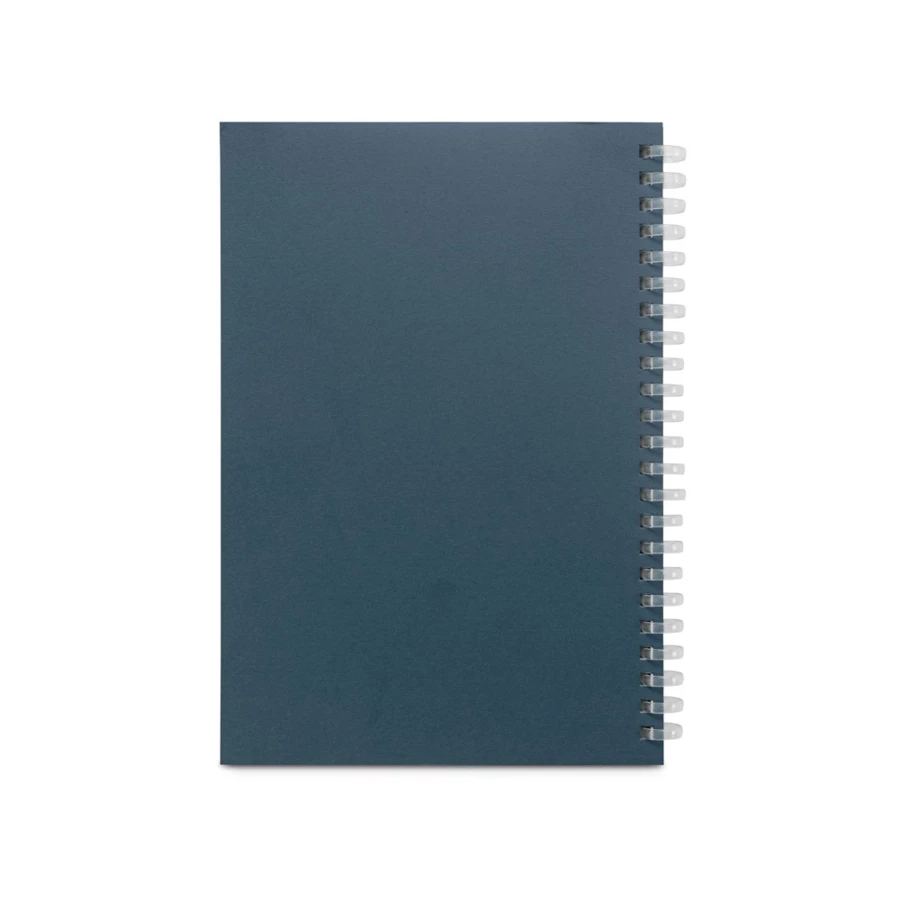Notatnik A5 z elastyczną okładką, wykonany w 100% z papieru pochodzącego z recyklingu (280 g/m²), z kwadratowymi rogami. Elastyczne pierścienie PE nadają notatnikowi charakterystyczny wygląd, dzięki czemu jest on zarówno plastyczny, jak i miękki. Zawiera 160 stron w linie, wykonanych w 100% z papieru pochodzącego z recyklingu (70 g/m²). 140 x 210 mm