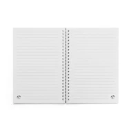 Notatnik A5 z elastyczną okładką, wykonany w 100% z papieru pochodzącego z recyklingu (280 g/m²), z kwadratowymi rogami. Elastyczne pierścienie PE nadają notatnikowi charakterystyczny wygląd, dzięki czemu jest on zarówno plastyczny, jak i miękki. Zawiera 160 stron w linie, wykonanych w 100% z papieru pochodzącego z recyklingu (70 g/m²). 140 x 210 mm