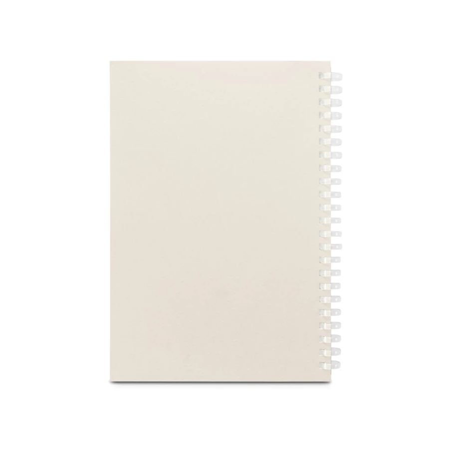 Notatnik A5 z elastyczną okładką, wykonany w 100% z papieru pochodzącego z recyklingu (280 g/m²), z kwadratowymi rogami. Elastyczne pierścienie PE nadają notatnikowi charakterystyczny wygląd, dzięki czemu jest on zarówno plastyczny, jak i miękki. Zawiera 160 stron w linie, wykonanych w 100% z papieru pochodzącego z recyklingu (70 g/m²). 140 x 210 mm
