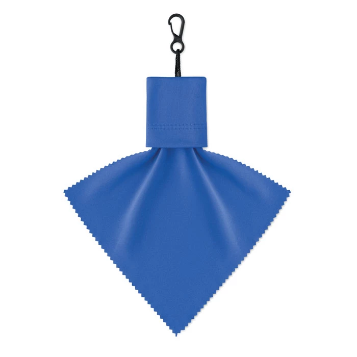 Ściereczka czyszcząca RPET z materiałowym woreczkiem z plastikowym haczykiem do zawieszania PP.