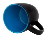 Czarny kubek ceramiczny z kolorowym wnętrzem, pojemność 300 ml. Dzięki specjalnej powłoce do grawerowania, wygrawerowane logo jest dopasowane do koloru wnętrza. W pudełku z papieru kraft.