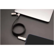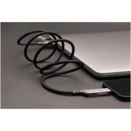 Magnetyczny kabel do ultraszybkiego ładowania 4 w 1 o mocy 100 W z tworzywa sztucznego rPET, który umożliwia ładowanie smartfonów, tabletów i laptopów. Podwójne wejście USB-A + USB-C sprawia, że kabel jest w 100% kompatybilny z najnowszymi modelami komputerów. Moc: Typ C i Lightning. Kompatybilny z CarPlay. Dostarczany z nadającym się do recyklingu etui z TPU i wkładką z papieru z recyklingu. Długość kabla: 1 metr.