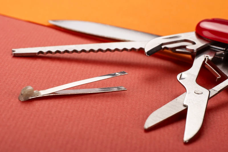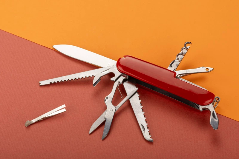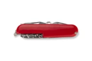 Scyzoryk HIDI z rękojeścią w kolorze czerwonym, wykonaną z tworzywa. Posiada wszystkie niezbędne funkcje: nóż, piła, skrobak do ryb, nożyczki, otwieracz do puszek, otwieracz do butelek, śrubokręt, korkociąg, szydło oraz dziurkacz do skór.