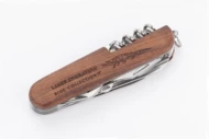 Scyzoryk z rączką wykończoną drewnem, która nadaje mu wyjątkowy charakter i piękny wygląd. Scyzoryk posiada wszystkie niezbędne funkcje: nóż, piła, skrobak do ryb, nożyczki, otwieracz do puszek, otwieracz do butelek, śrubokręt, korkociąg, szydło oraz dziurkacz do skór.