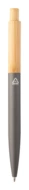 Długopis z bambusa i aluminium pochodzącego z recyklingu, z gumowanym wykończeniem i metalowym klipem. Z niebieskim wkładem.