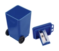 Plastikowa temperówka w kształcie kosza na śmieci.