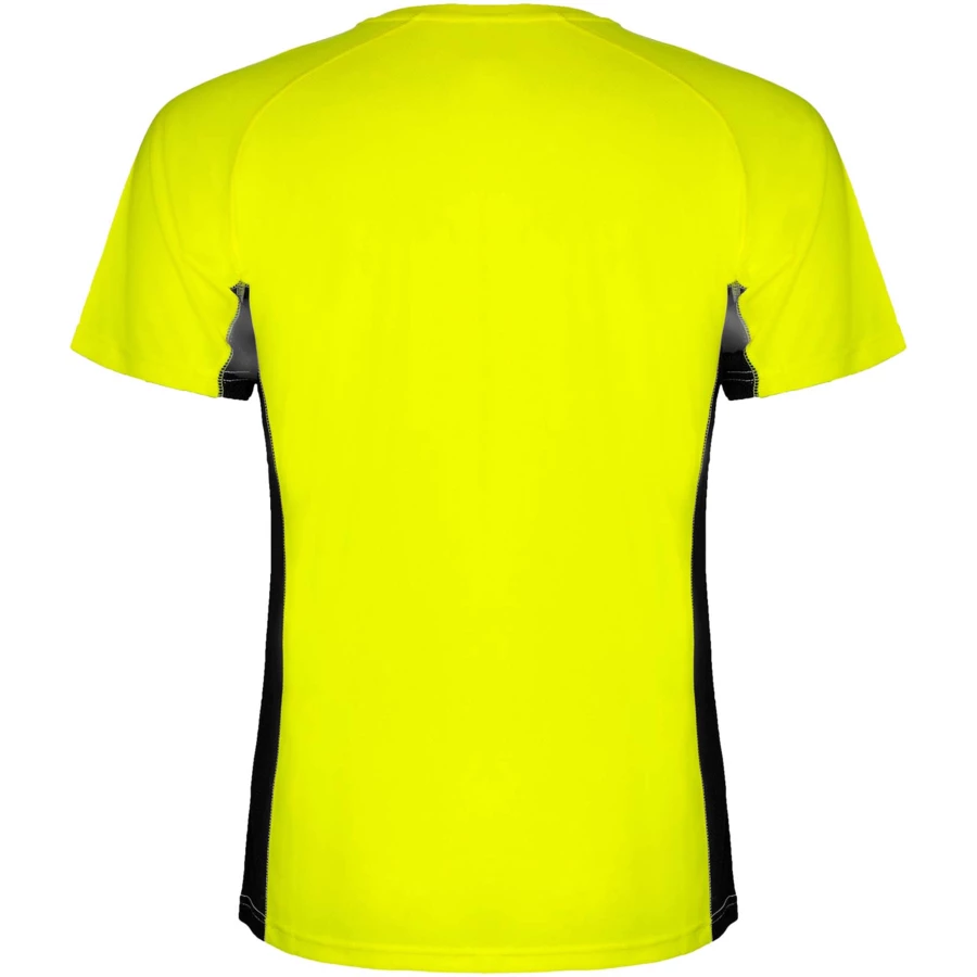 Techniczny i oddychający materiał. Połączenie dwóch materiałów poliestrowych: Główny materiał o splocie Birdseye, panele boczne i wewnętrzny rękaw z mikroperforowanego materiału. Okrągły dekolt z wewnętrznymi wzmocnionymi krytymi szwami. Usuwalna etykieta.
