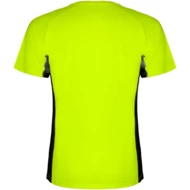 Techniczny i oddychający materiał. Połączenie dwóch materiałów poliestrowych: Główny materiał o splocie Birdseye, panele boczne i wewnętrzny rękaw z mikroperforowanego materiału. Okrągły dekolt z wewnętrznymi wzmocnionymi krytymi szwami. Usuwalna etykieta.