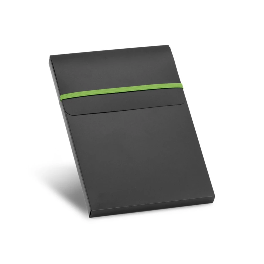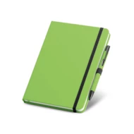 Zestaw z długopisem i notesem A5 z PU. Notes posiada 160 gładkich stron, zakładkę ze wstążki i gumkę. Ten zestaw ma możliwość personalizacji i jest dostarczany w pudełku prezentowym wykonanym z PP z gumką. Długopis: ø10 x 137 mm | Notes: 140 x 210 mm | Pudełko: 155 x 214 x 13 mm