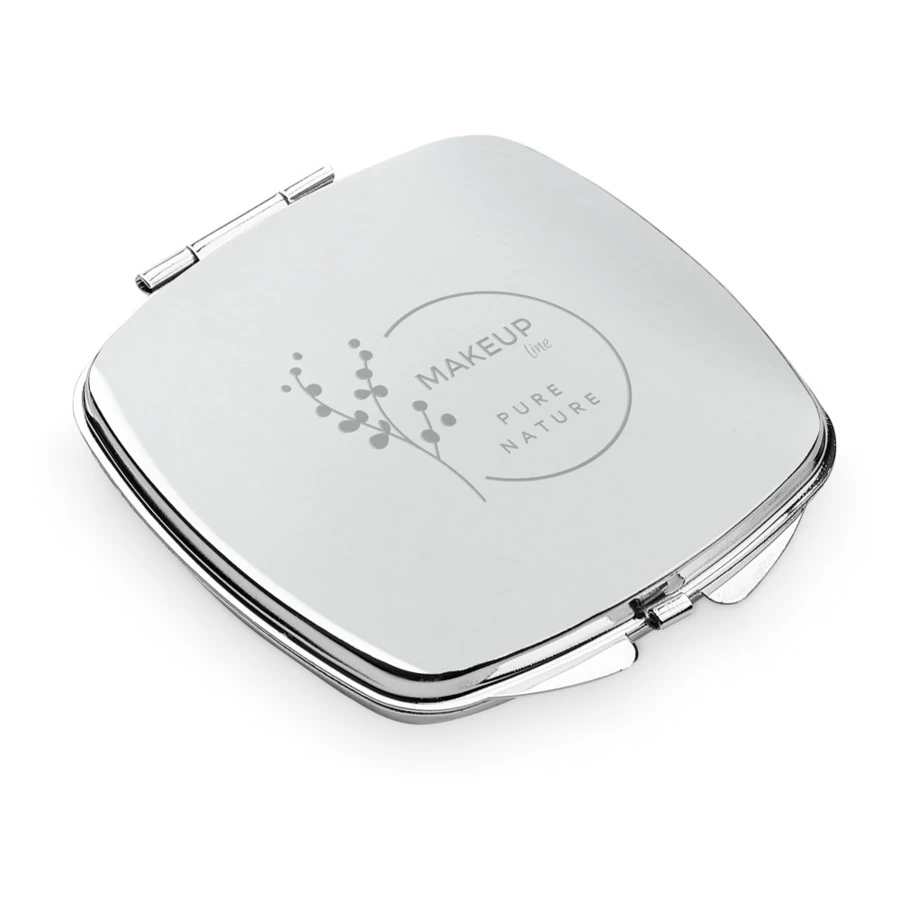 Podwójne lusterko do makijażu wykonane z metalu, praktyczne i kompaktowe do użycia w razie potrzeby. Lusterko ma idealne miejsce do personalizacji metodą domingu. Dostarczane w pudełku prezentowym. Pudełko: 67 x 75 x 9 mm