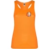 Techniczny, oddychający materiał, łatwy do prania i suszenia. Prążkowane otwory na ramiona i dekolt. Tył typu racerback i szwy boczne. Usuwalna etykieta.