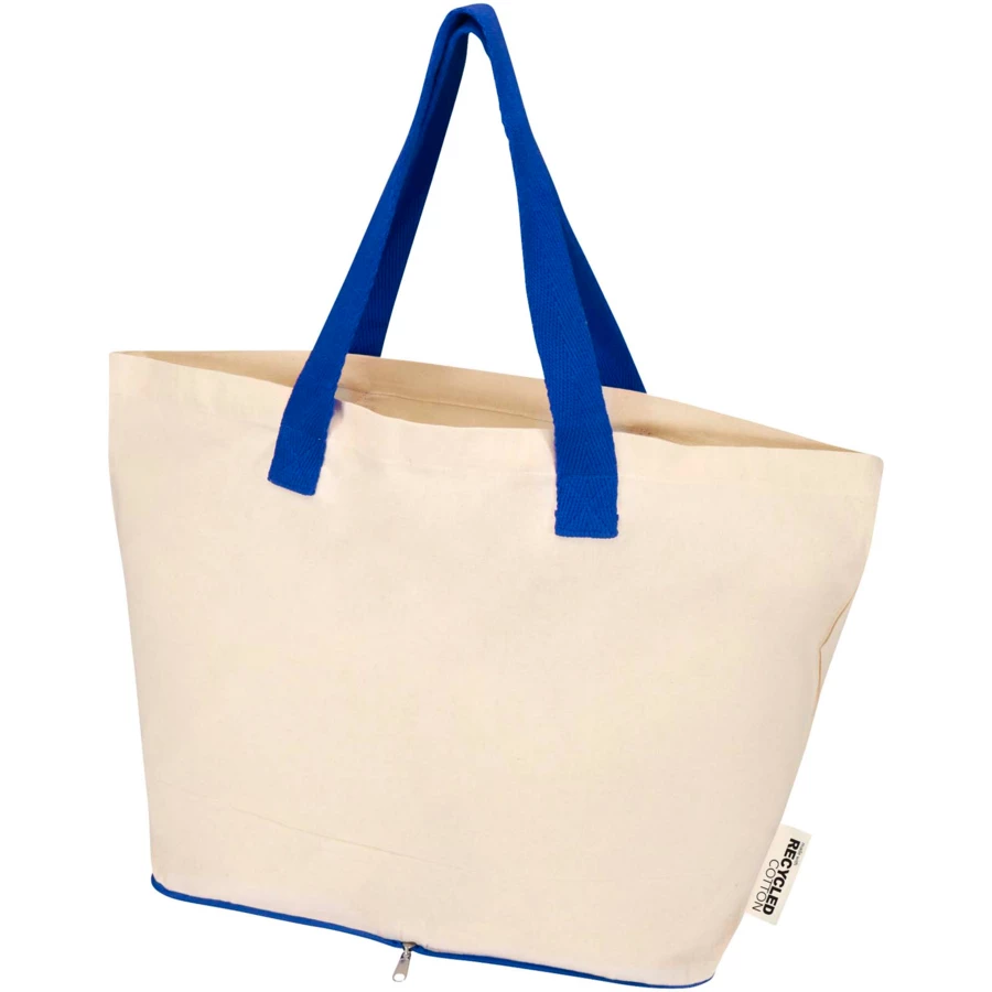 Lekka i praktyczna, składana torba na zakupy Sierra jest wykonana w 100% z certyfikowanej przez GRS bawełny z recyklingu o gramaturze 140 g/m² i zapewnia równowagę między uniwersalnością a trwałością. Można ją starannie złożyć do dołączonej kieszonki zapinanej na zamek błyskawiczny znajdującej się na dole, dzięki czemu jest kompaktowa i łatwa do przenoszenia. Torba o pojemności 10 kg doskonale nadaje się na zakupy, do załatwiania spraw lub w podróży i jest wyposażona w podwójne uchwyty, które zapewniają dodatkowe wsparcie i wygodę podczas przenoszenia cięższych ładunków. Pojemność: 12 litrów.