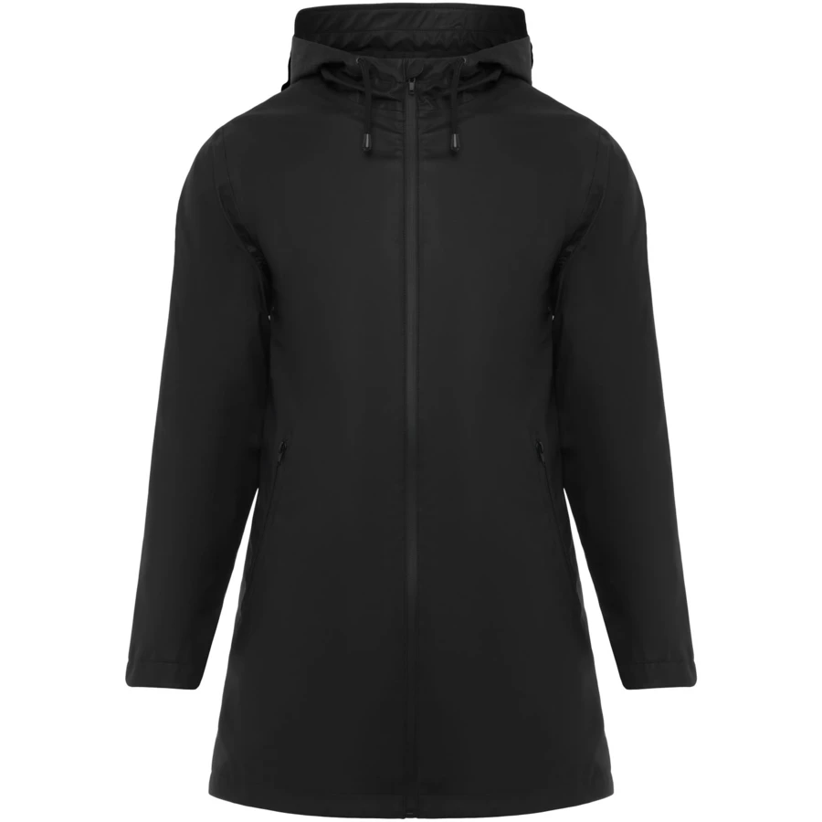 Wodoodporna kurtka przeciwdeszczowa dla kobiet. Kaptur z daszkiem. Zgrzewane zamki i szwy. Kontrastowe detale w kolorze czarnym. Dwie boczne kieszenie zapinane na zamek. Rozcięcie z tyłu. Usuwalna metka. Wodoodporna.