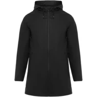 Wodoodporna kurtka przeciwdeszczowa. Kaptur z daszkiem. Zgrzewane zamki błyskawiczne i szwy. Kontrastowe detale w kolorze czarnym. Dwie kieszenie boczne z zamkiem błyskawicznym. Rozcięcie z tyłu. Usuwalna metka. Wodoodporna.
